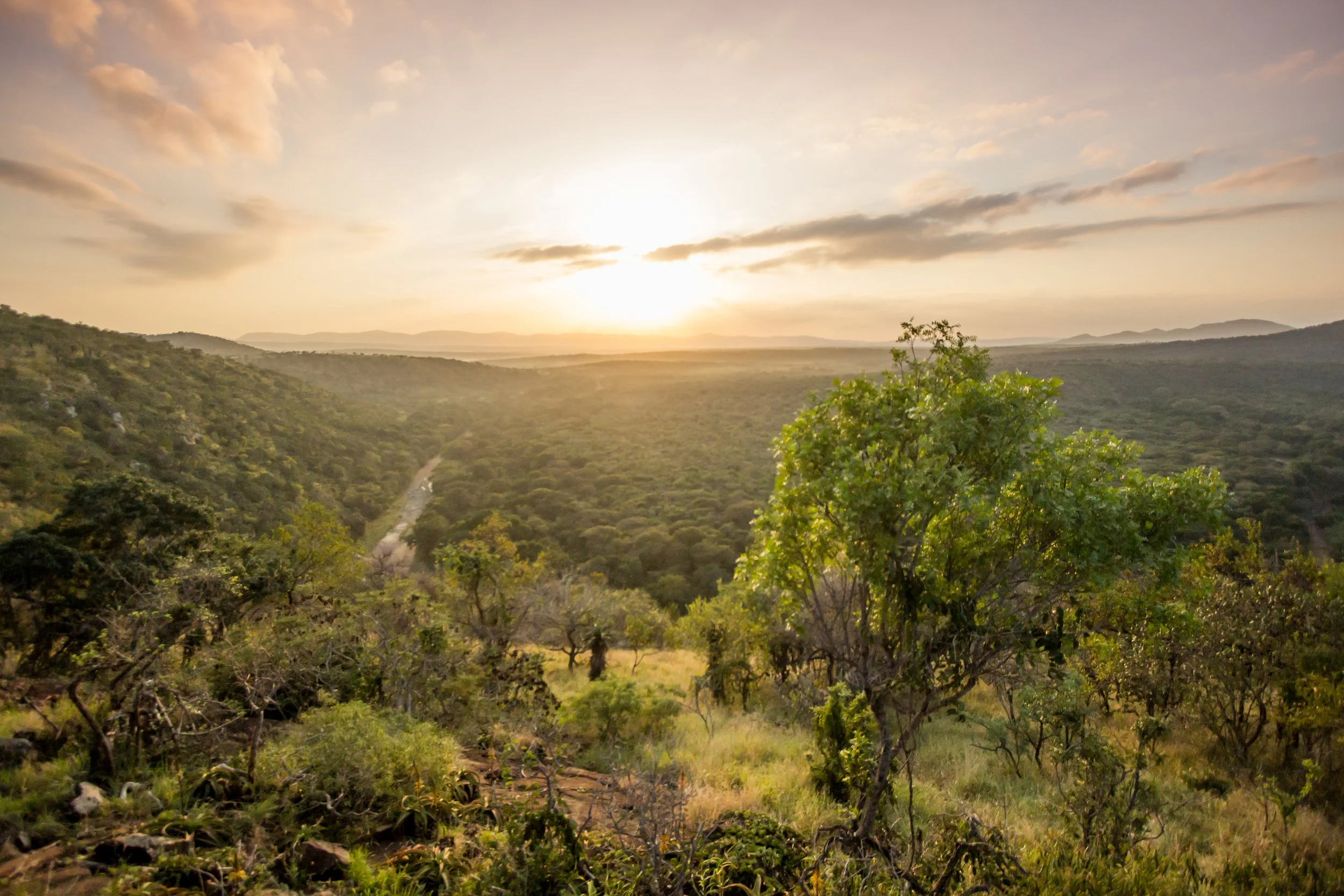 Set deep in the Manyoni Private Game Reserve and sitting high up on a hillside, Leopard Mountain boasts staggering views over the bushveld and of the Lebombo Mountains. Sunrise, sunset, and even storms rolling in are simply sensational from this vantage point. It is, of course, a stand out feature of this lodge and one that guests continuously rave about. There is something very relaxing and certainly therapeutic about gazing off into the distance with nothing but pure nature in front of you. The heights also don’t make you feel too disconnected from the bush or wildlife as there are lots of camp visitors, usually in the form of nyala and warthog, that will often visit the guests’ suites. And you can spot wildlife from your vantage point with a pair of binoculars which you will find around camp. Thankfully the weather in Zululand is incredible, so you’ll be able to hopefully catch a few sunrises and sunsets during your stay and afternoon lightening storms in Summer especially.